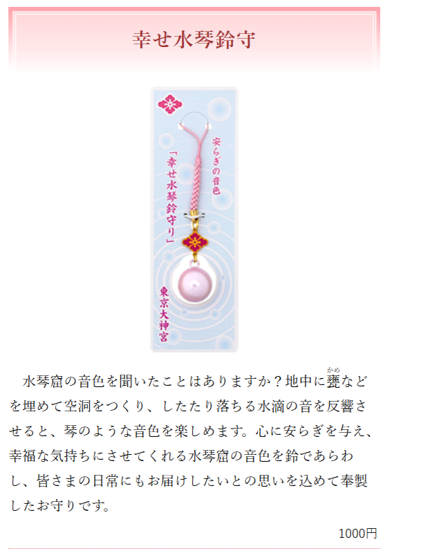 「水琴鈴守(すいきんすずまもり)」が非常に有名です。